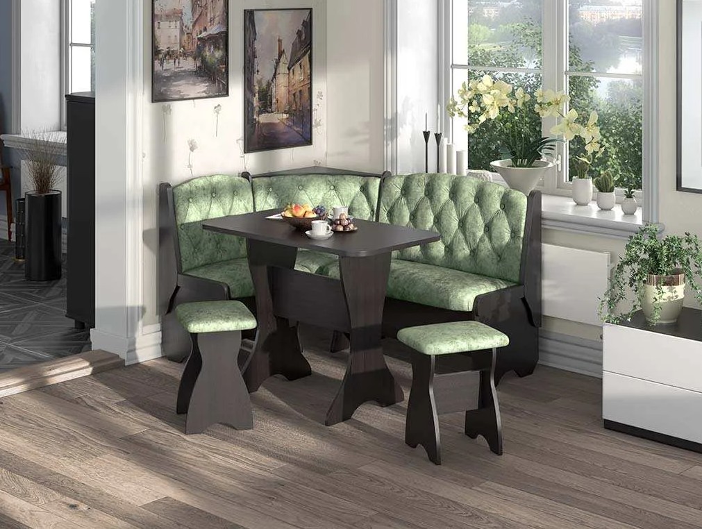 Кухонный угловой набор Орхидея Люкс, ЛДСП венге, обивка велюр мохито