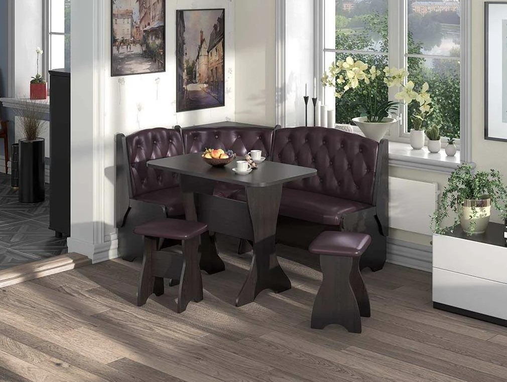 Кухонный угловой набор Орхидея Люкс, ЛДСП венге, обивка экокожа умбер