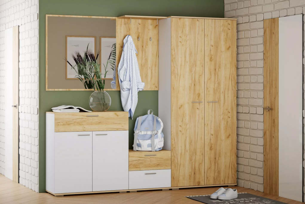Тумба оснащена двумя выдвижными ящиками, которые выдвигаются плавно и бесшумно благодаря шариковым направляющим, а лаконичные ручки серого цвета подчеркивают стиль коллекции. В ящиках можно удобно расположить обувь. Дополните тумбу шкафом из одноименной коллекции, чтобы создать особо гармоничную атмосферу.