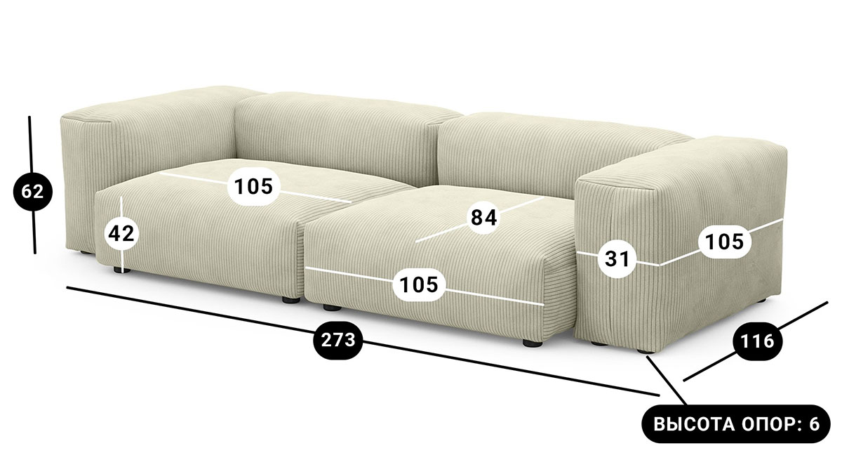 Отзывы о товаре "Диван модульный Фиджи двухсекционный большой, велюр Cilium Bone":