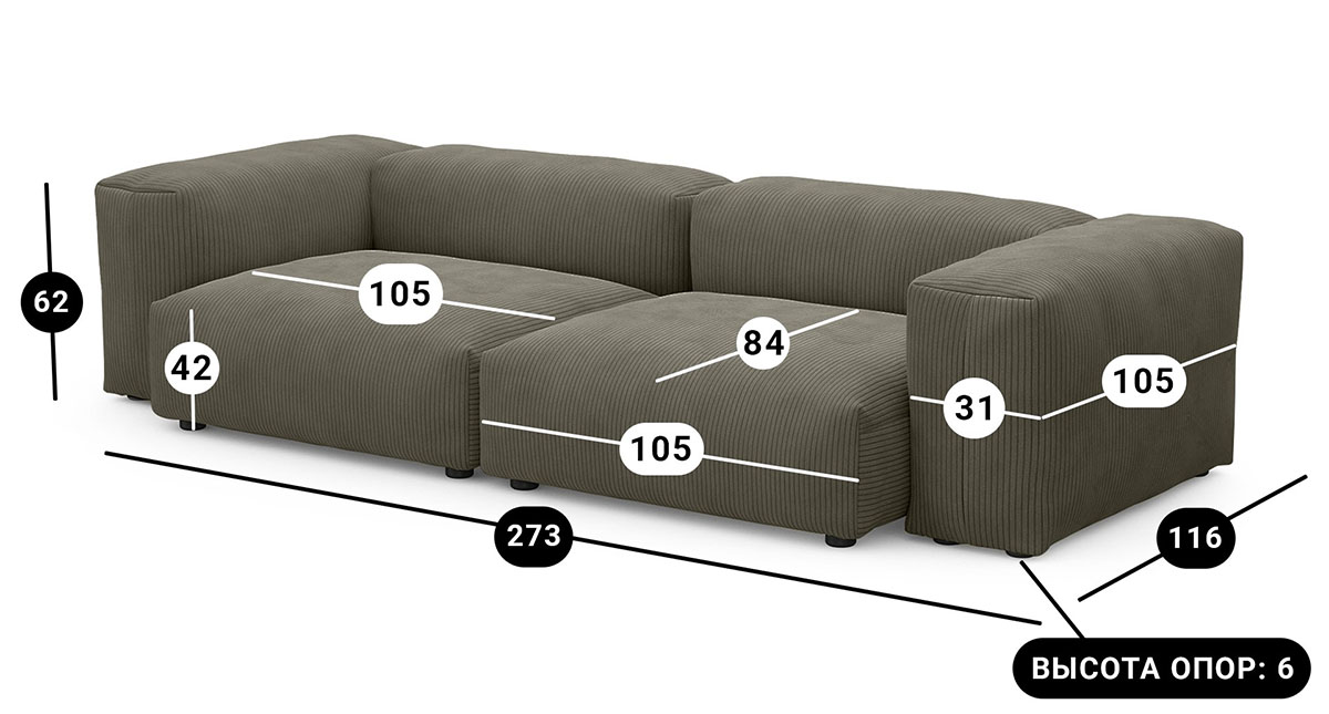 Отзывы о товаре "Диван модульный Фиджи двухсекционный большой, велюр Cilium Brown":