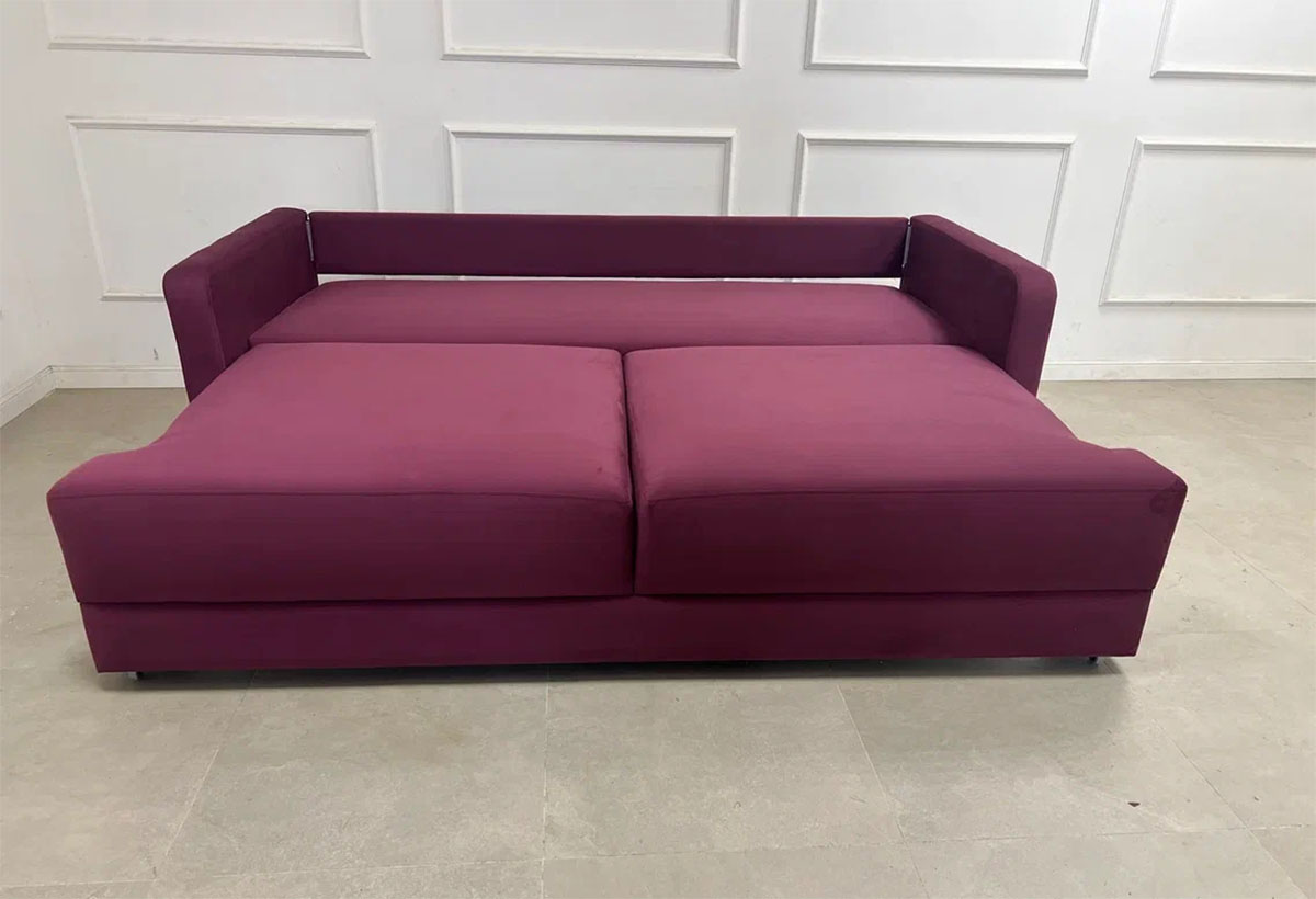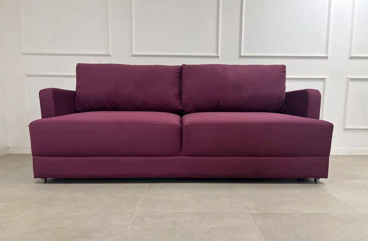 Диван с глубиной сиденья 84 см без учета подушек обеспечивает комфортную и свободную посадку. Общие габариты дивана составляют 215×112×93 см, что позволяет удобно разместить его в гостиной или спальне. В разложенном виде диван образует спальное место размером 155×190 см, подходящее для ежедневного сна.