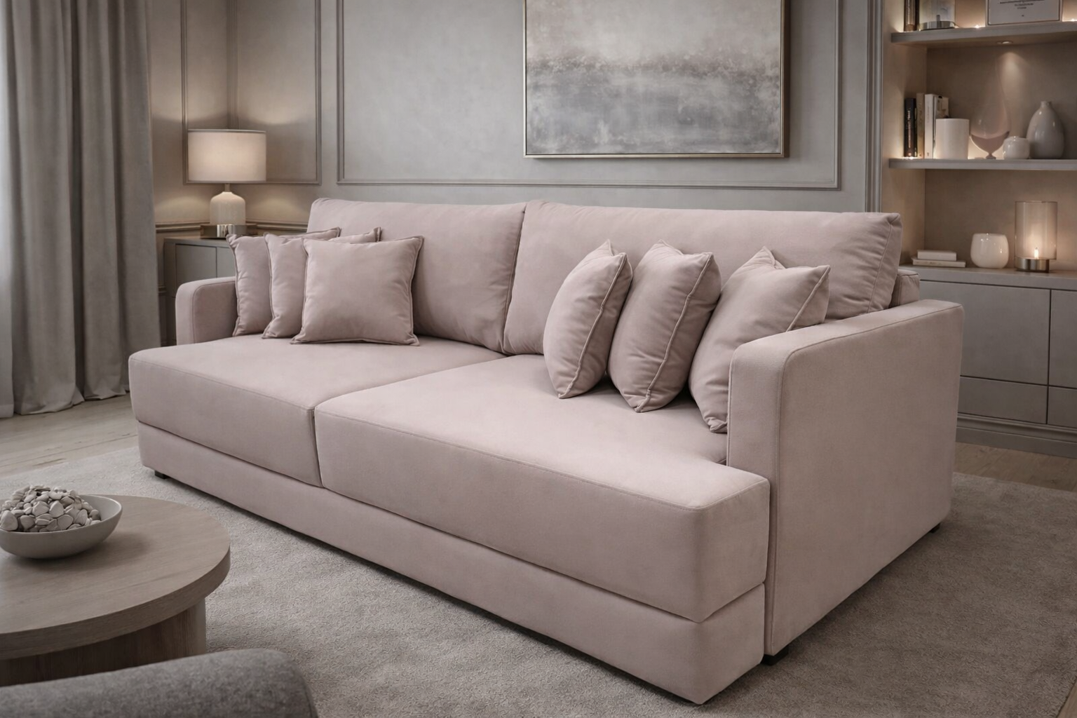Современный прямой диван гармонично впишется в интерьер гостиной, спальни или зоны отдыха. Лаконичная форма, мягкие линии и объемные подушки создают аккуратный и уютный внешний вид.