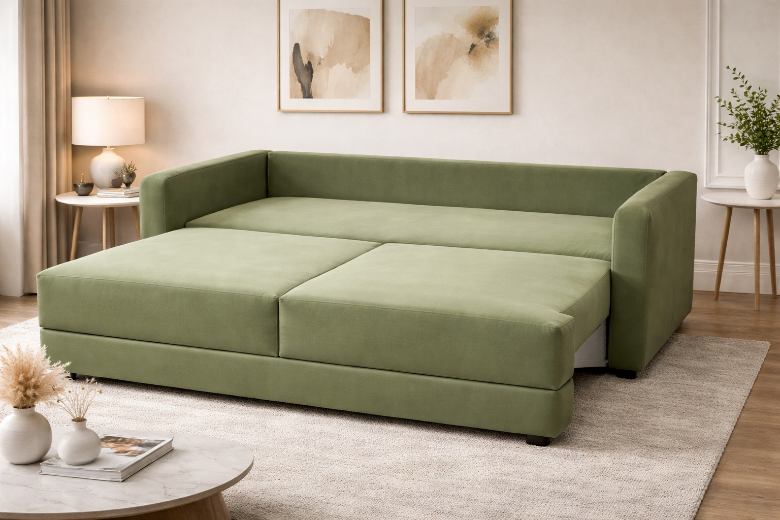 Диван оснащен независимым пружинным блоком, который обеспечивает равномерную поддержку тела, комфортную посадку и подходит для ежедневного использования, в том числе в качестве спального места. Просторное сиденье и увеличенная глубина позволяют удобно расположиться для отдыха.