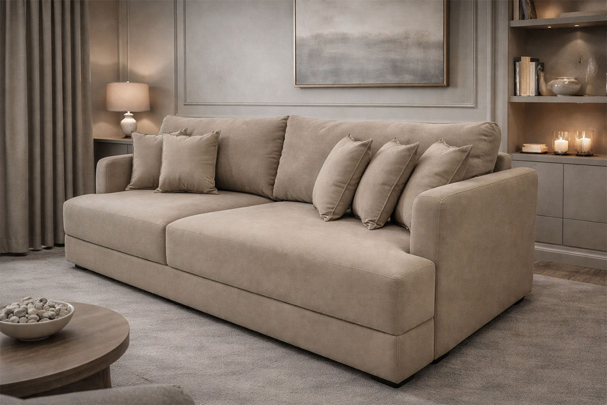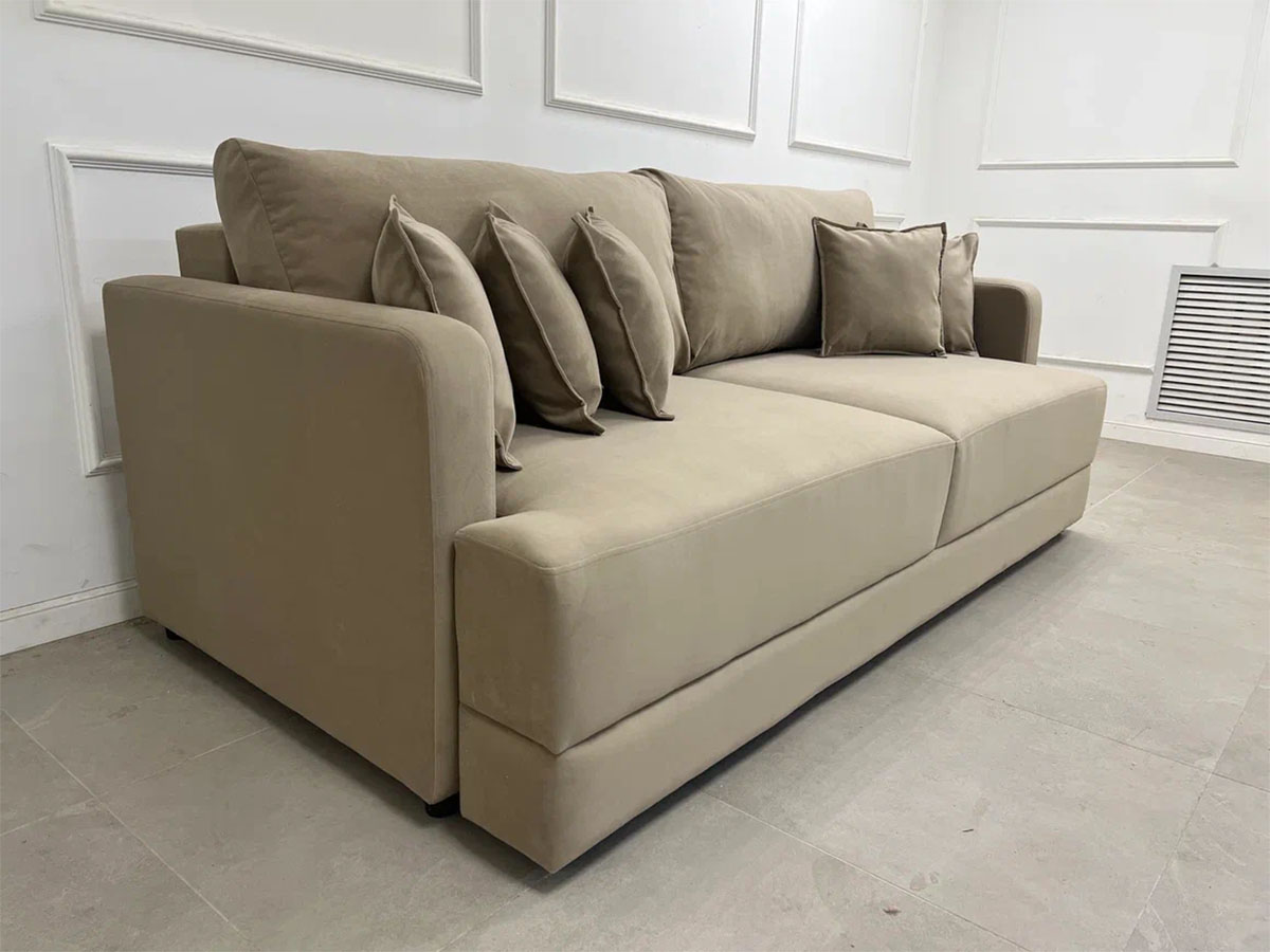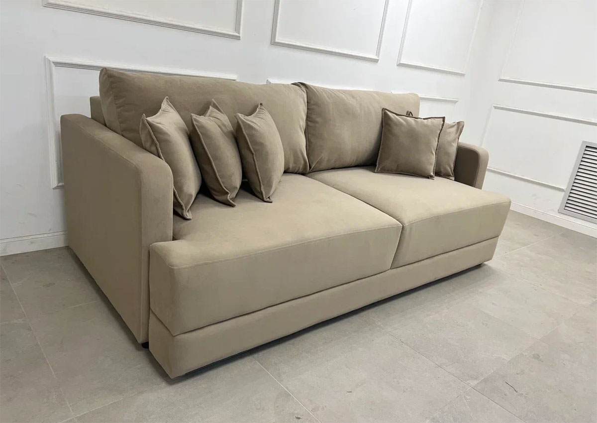 Современный прямой диван гармонично впишется в интерьер гостиной, спальни или зоны отдыха. Лаконичная форма, мягкие линии и объемные подушки создают аккуратный и уютный внешний вид.