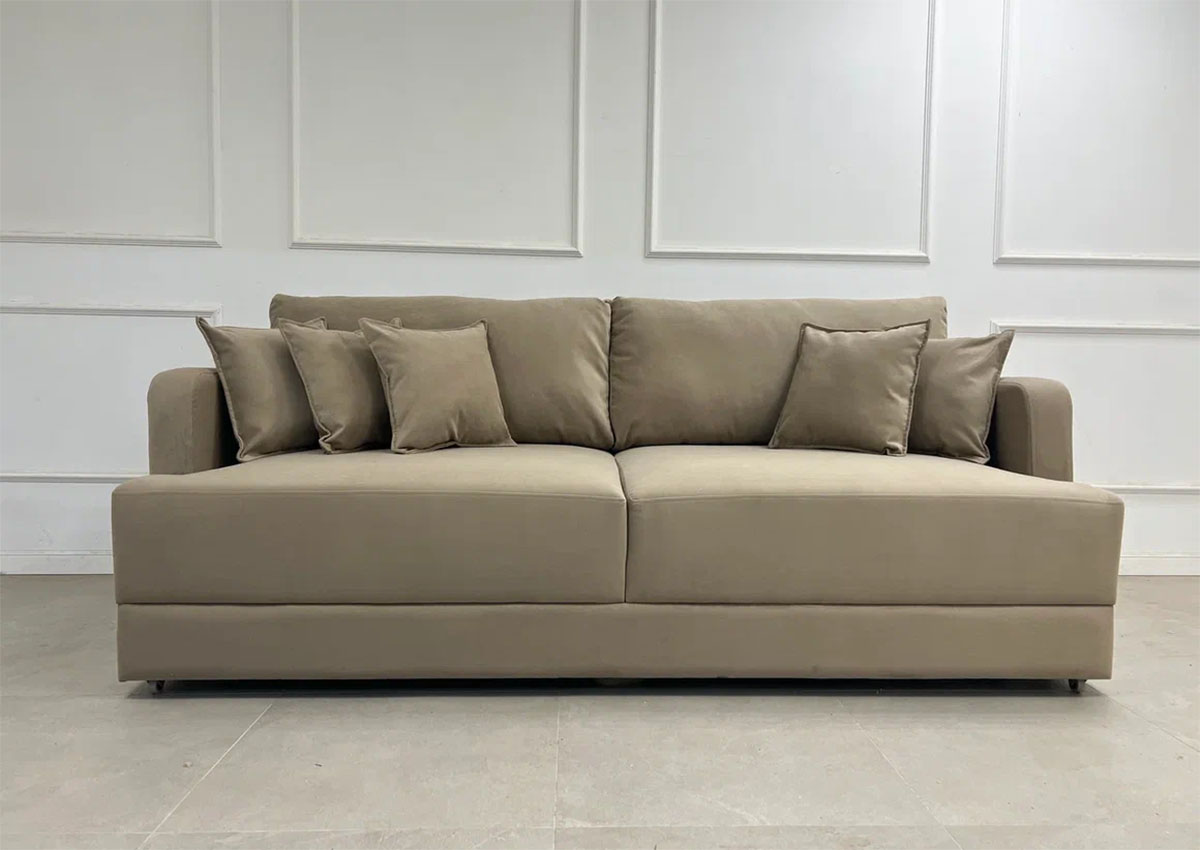 Диван оснащен независимым пружинным блоком, который обеспечивает равномерную поддержку тела, комфортную посадку и подходит для ежедневного использования, в том числе в качестве спального места. Просторное сиденье и увеличенная глубина позволяют удобно расположиться для отдыха.