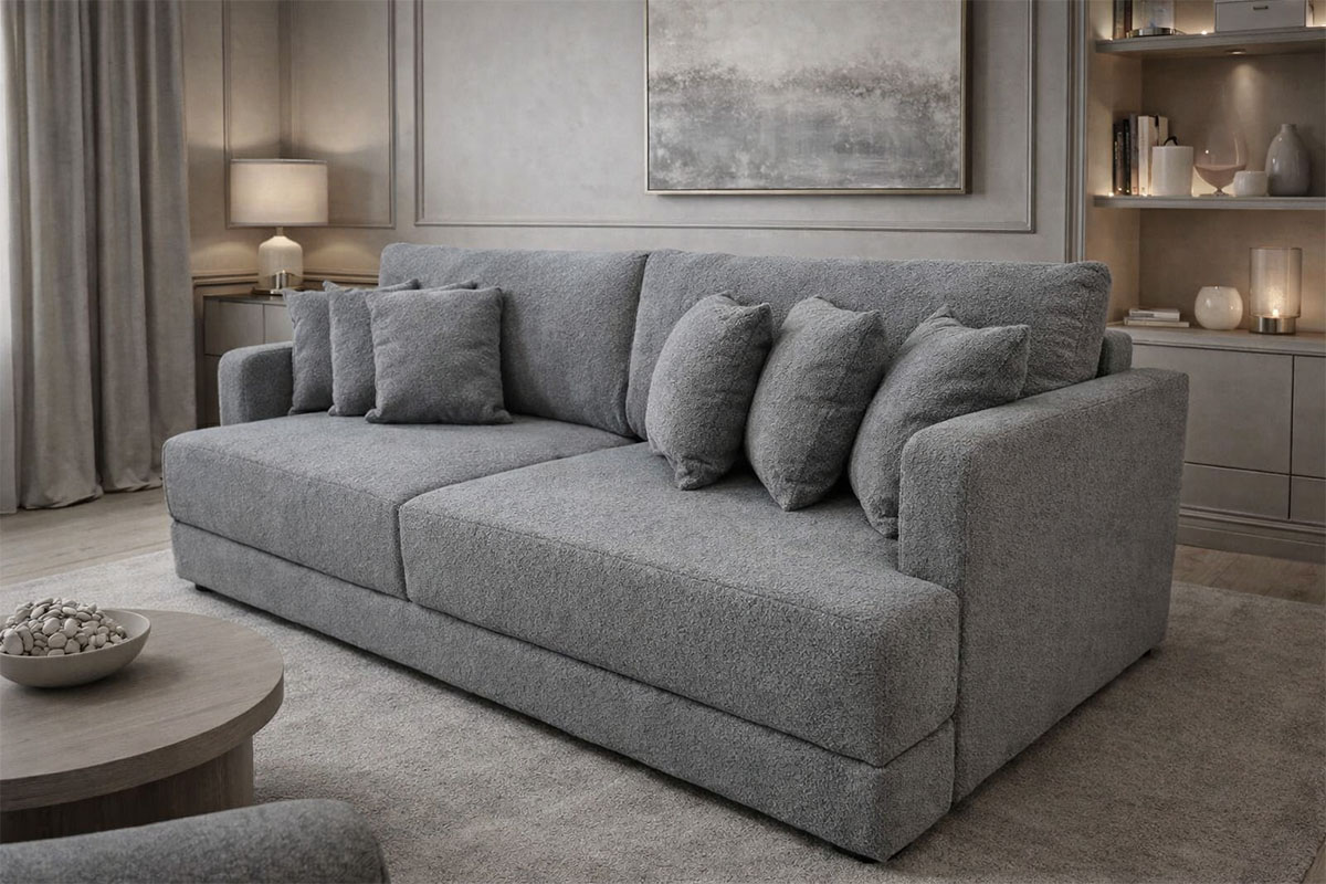 Современный прямой диван гармонично впишется в интерьер гостиной, спальни или зоны отдыха. Лаконичная форма, мягкие линии и объемные подушки создают аккуратный и уютный внешний вид.