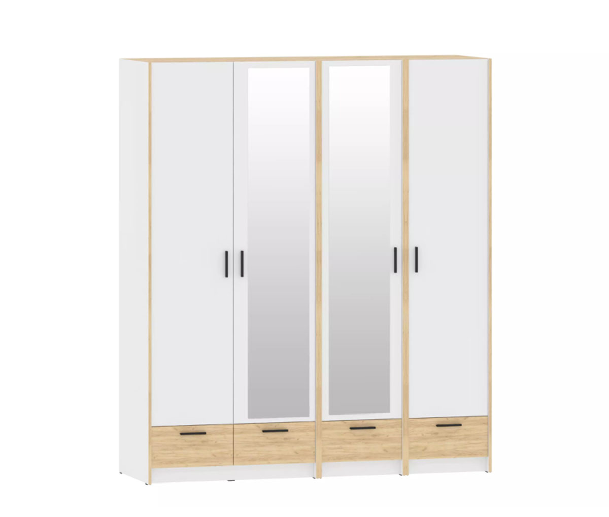 Модульная композиция включает двустворчатый и два одностворчатых шкафа, которые представляют собой систему с овальной штангой, полками и выдвижными ящиками для наведения порядка в комнате и оптимизации места хранения вещей. Дополните шкафы кроватью и тумбой из одноименной коллекции для создания особо гармоничной атмосферы в спальне!