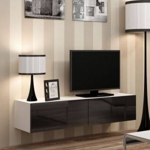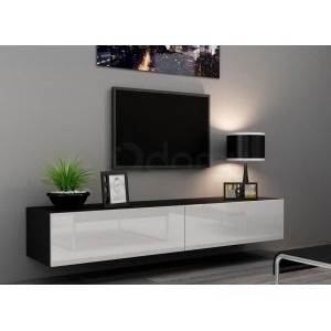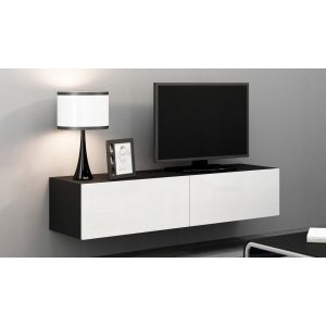Стенка навесная в гостиную-1 корпус ЛДСП черный, МДФ белый глянец
