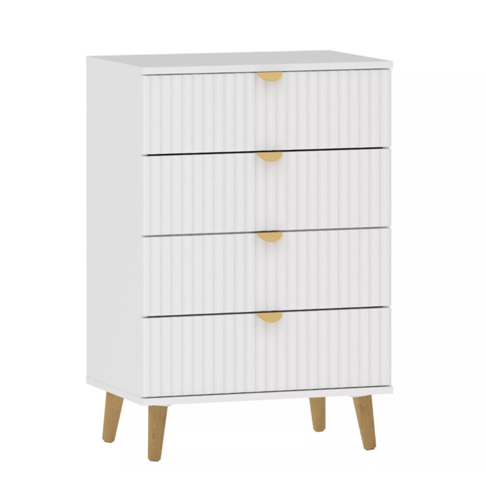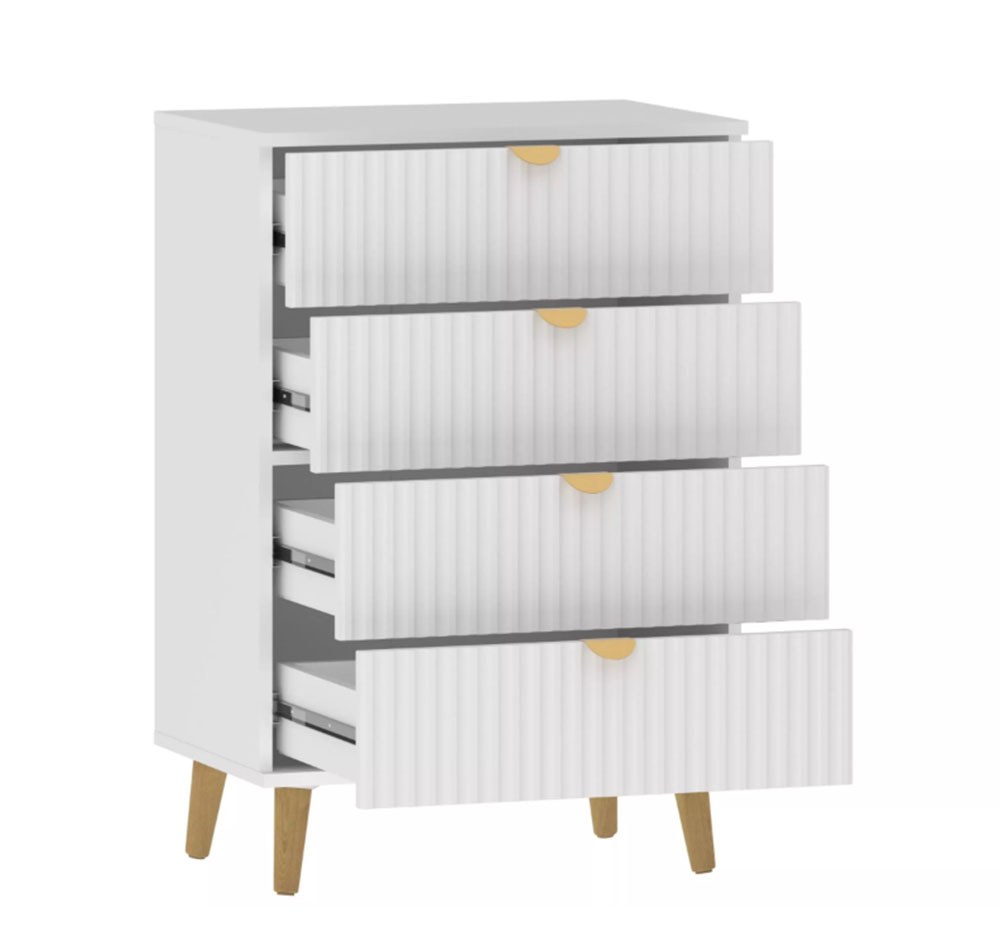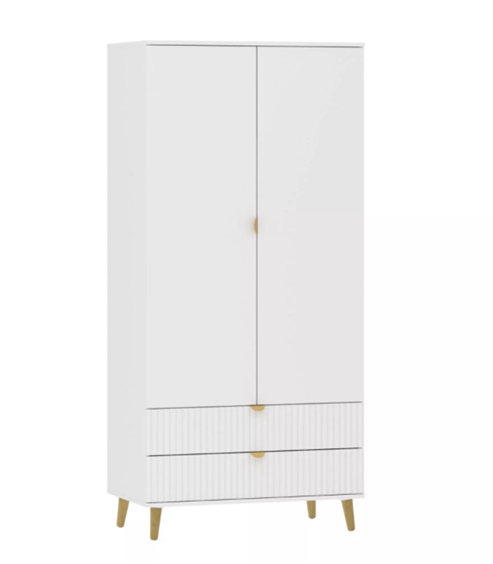 Модульная композиция включает 2 тумбы, оснащенные выдвижными ящиками, которые открываются плавно и бесшумно благодаря шариковым направляющим, комод и шкаф, в котором удобно организовать предметы одежды, при этом высокие опоры облегчают процесс уборки.