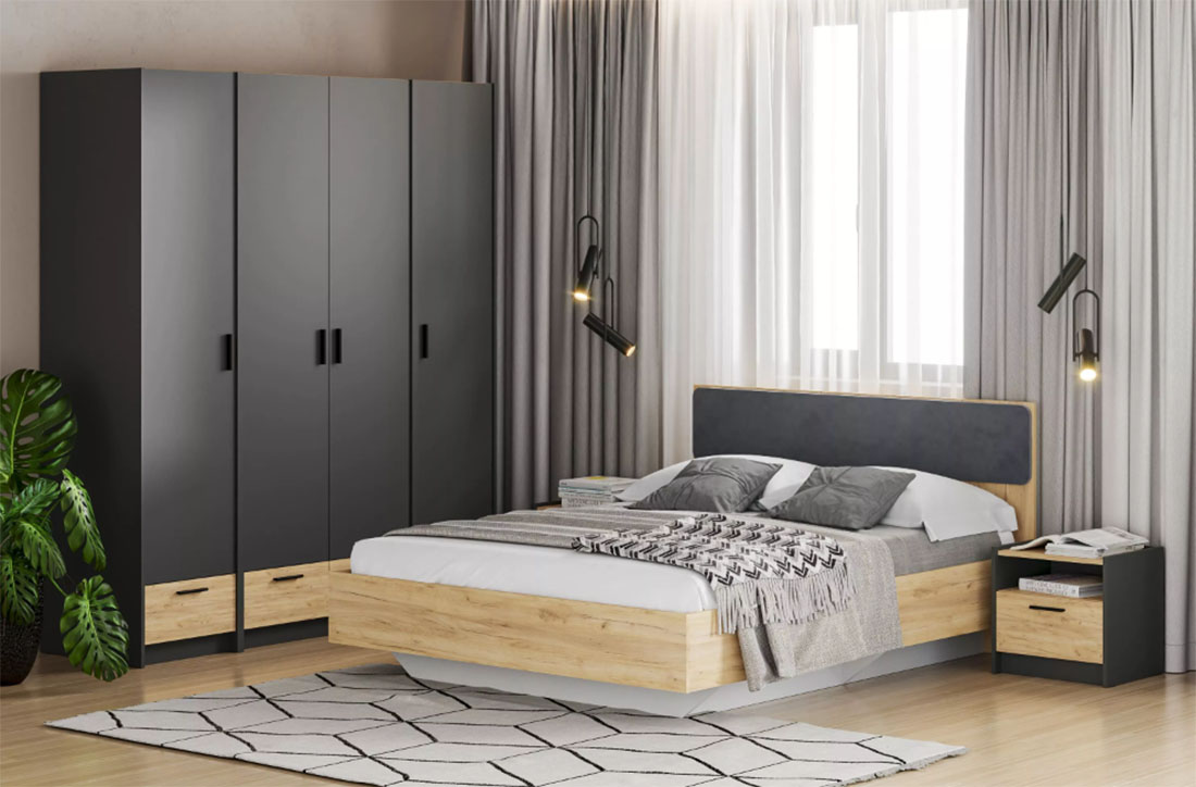 Спальня Оттавия Комплектация 4, Антрацит/Дуб Крафт Золотой