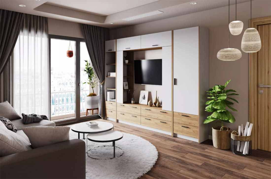 Комплектация №1 новой коллекции гостиной Оттавия представлена в двух цветах на выбор – белый и антрацит, которые подойдут для любого современного интерьера, будь то скандинавский или урбанистический.
