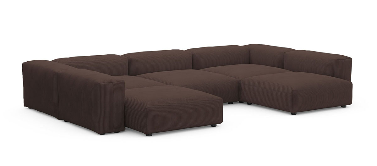 Модульный П-образный диван Фиджи, с подлокотниками, Cilium Chocolate